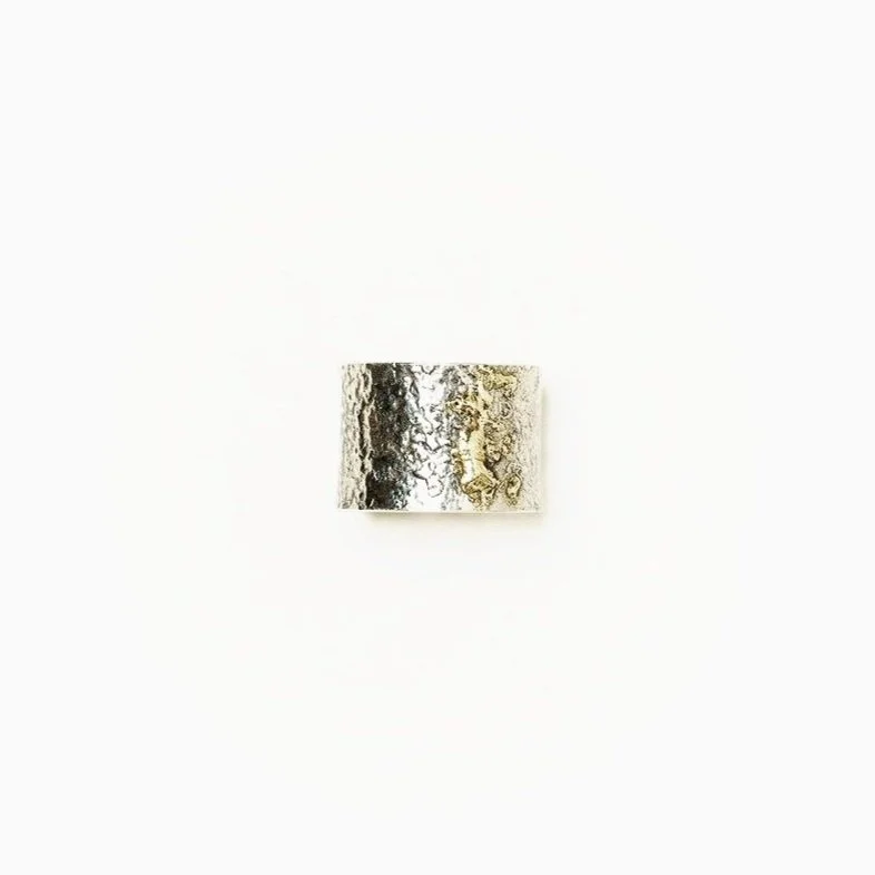 "Reticulated ring", sterling silver and gold, 2023“My work embodies connection both thematically and because it is produced in community. Each piece is ideated, troubleshooted, refined, and celebrated by my little village. I came to the hobby after the height of the COVID-19 pandemic lockdown, feeling very much like I needed to do something tactile with other humans. At the completion of every piece, I feel as though it’s something we’ve done together.."