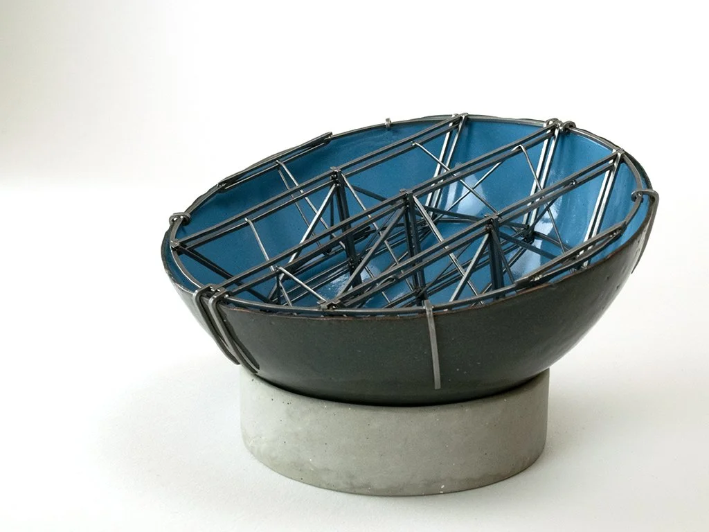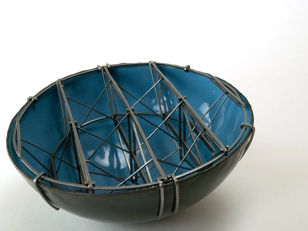 The inspiration for this body of work comes from two major sources. One source is the truss systems left behind on decaying industrial buildings, and the other source is the structural support that reinforces bridges. Truss systems offer support and safety through their connections. They tend to persevere even as the roof and walls of a building decay and fade away. These systems of support survive the test of time. Bridges allow us to travel across landscapes and connect to places and people that may otherwise be cut off from us. There is strength and resilience found in being a part of an interconnected community."