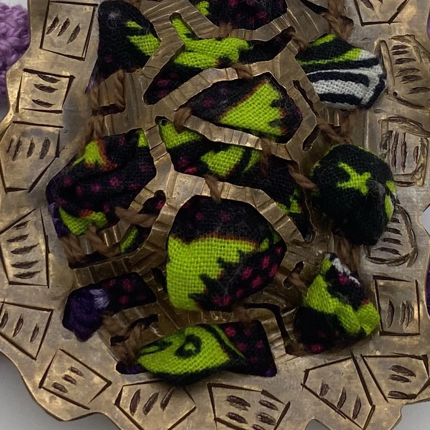 "Isabullas Banquet", Mixed fibers, copper, 4" x 3.5", 2023