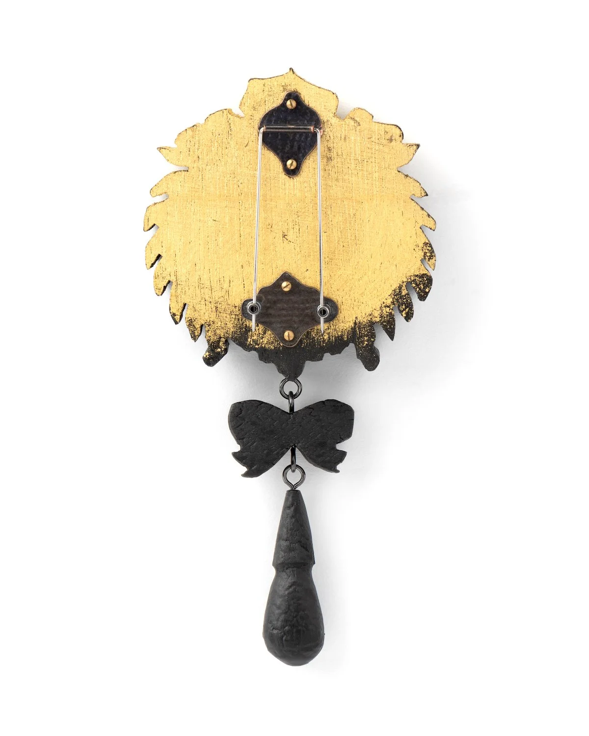 "Ornament 3", Walnut, 22k gold leaf, sterling silver, paint, copper, steel Larger piece 3" x 2.125" x .625", smaller pin 2" x 2" x .625", 2022