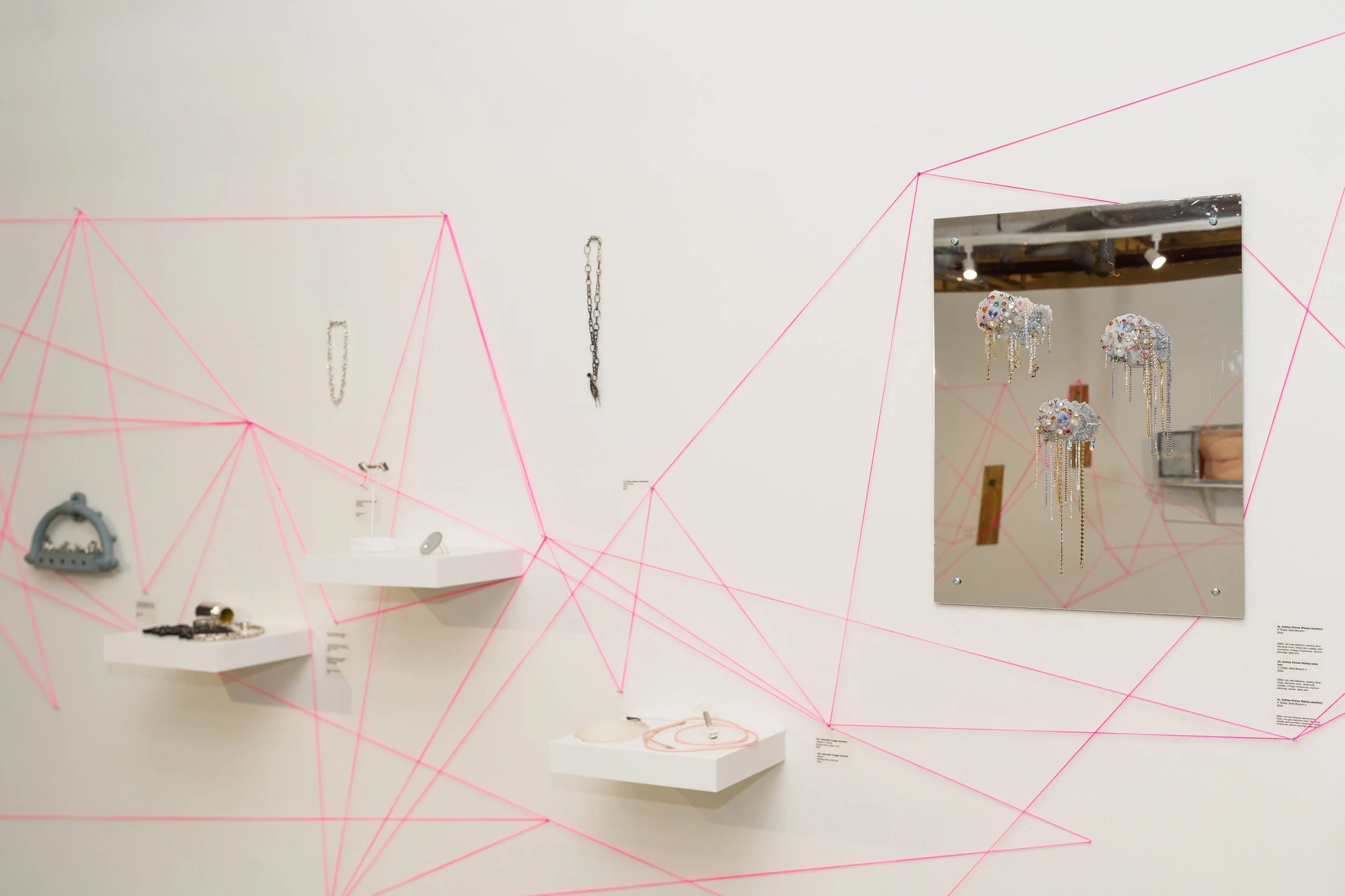 “My work is rooted in connection—literal, physical, spiritual, and emotional. Each work is an intentional weaving of queer, trans, and disability theory with fragments of internet culture, memes, political ideology, and my own spirit. These elements don’t just inform the process; they are integral to the work itself. I create bodily adornment that bridges seemingly disparate realms, forming networks of meaning that stretch across bodies, identities, and systems. Through this, I seek to reveal new relationships and possibilities, offering opportunities to engage with the work on multiple levels—intellectually, personally, emotionally, and politically. It’s through these layered connections that my practice steps into both old and new insights, challenging existing boundaries."