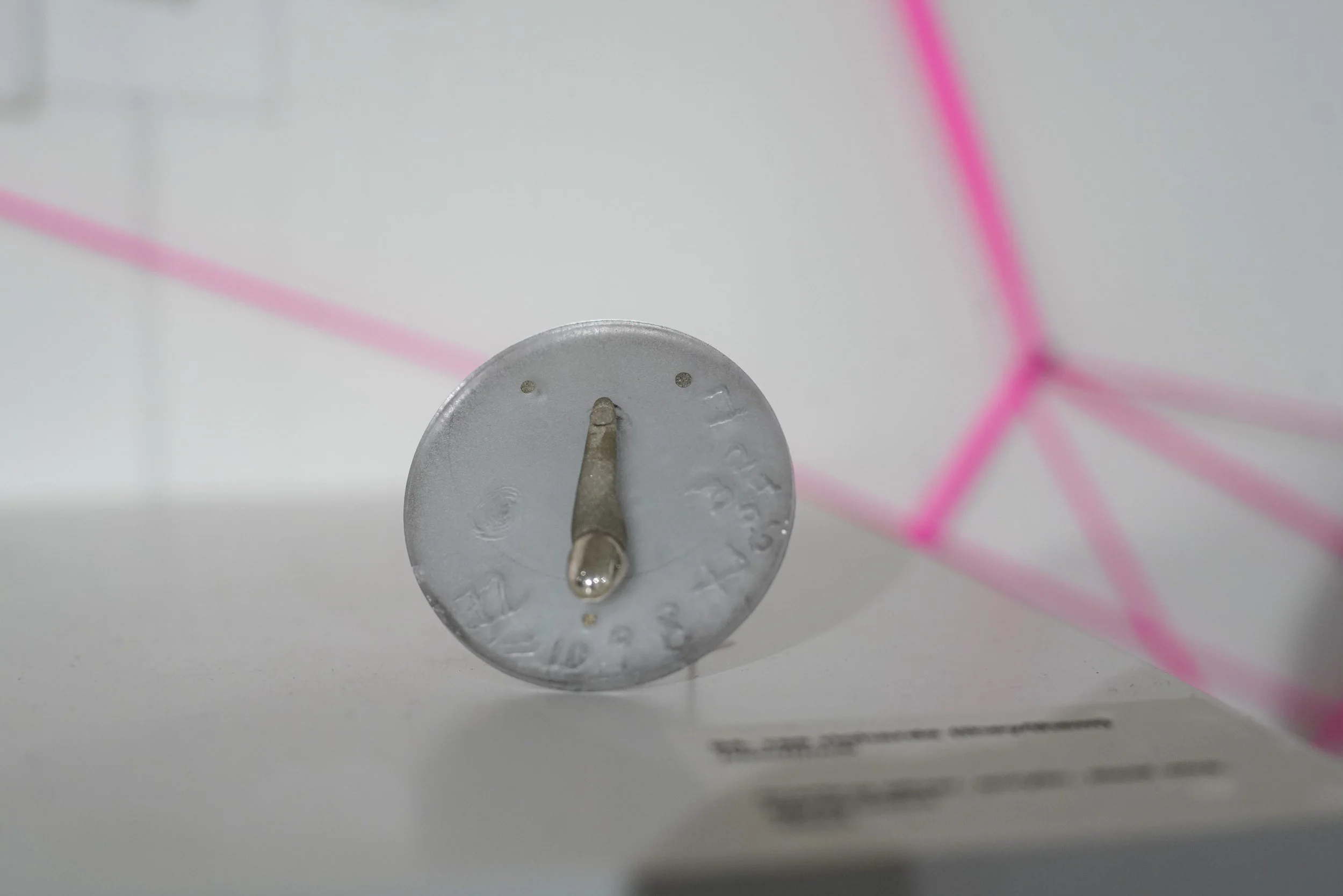 "bioc(l)ock", Sterling silver, acrylic, steel wire, spray paint, 2" x 2" x .6", 2024