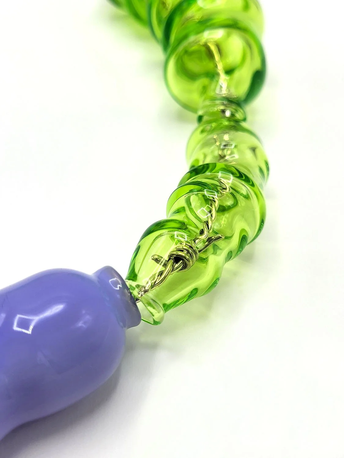 Much of my work orients itself around care—for my ancestors, for nonhuman entities and spiritual practice, for fragile materials like blown glass. Care in itself is a flourishing practice: it resists extraction and violence by cultivating relational growth and continuity. Each piece I create becomes a site where fragility is not a weakness but a condition for connection. It is connection which brings us together and I really believe in a flourishing collective."