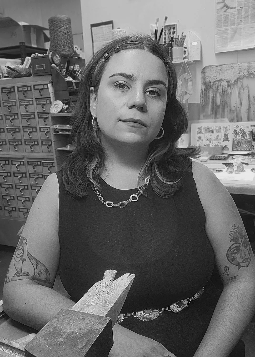 Hannah Reynoso Toussaint is a metalsmith located in Athens, Georgia completing a Master of Fine Arts in Metalsmithing and Jewelry at the University of Georgia. Hannah earned their BA from the University of New Orleans, and completed a post-baccalaureate program at the University of North Texas in 2022 for Jewelry and Metalsmithing. Hannah identifies as a queer latinx maker with a special interest in the materiality of glass. Hannah's work has been exhibited nationally including the Metal Museum in Memphis, TN and at New York City Jewelry Week 2024, and 2025. They recently received Best in Show for the 2025 Society of North American Goldsmiths Student Juried Exhibition.