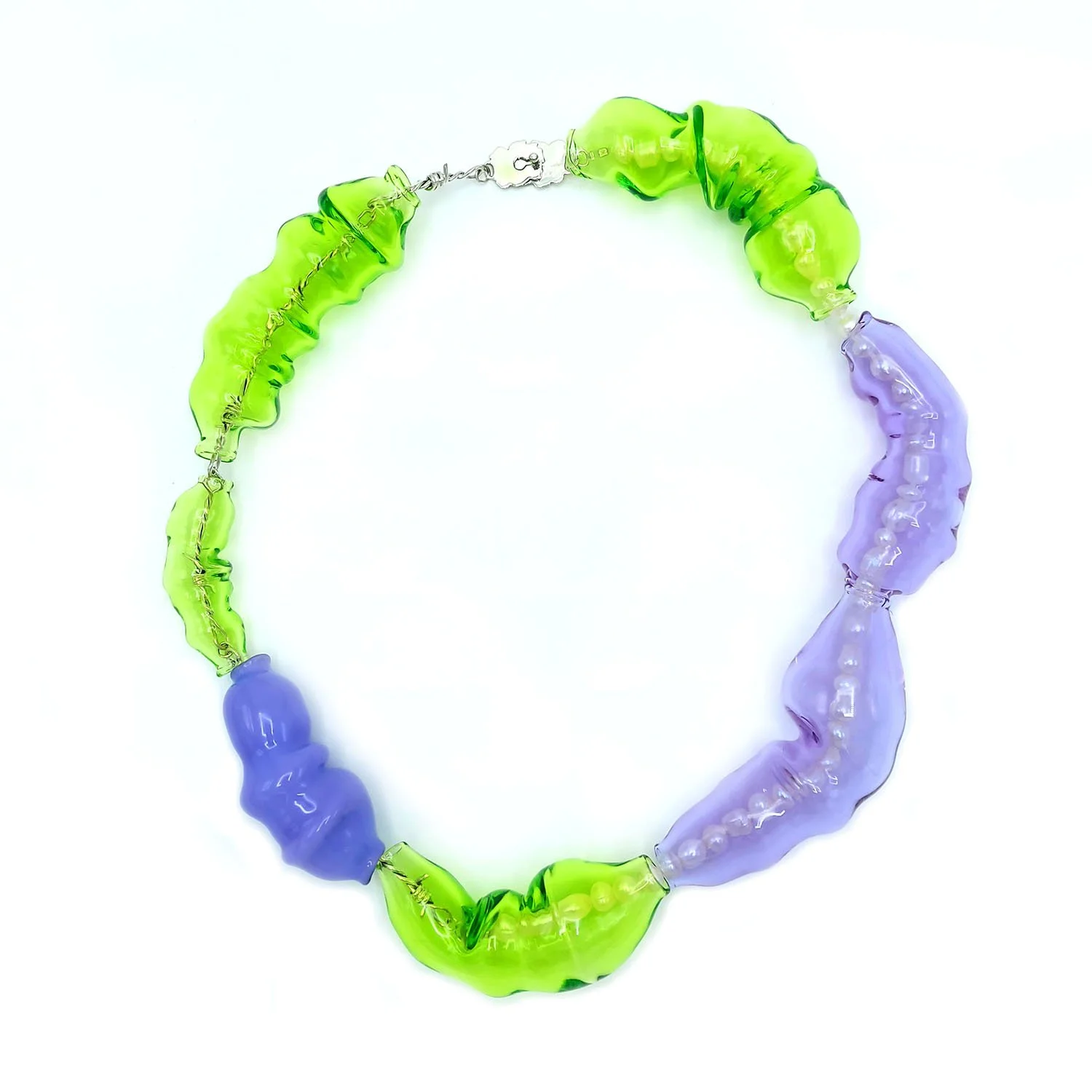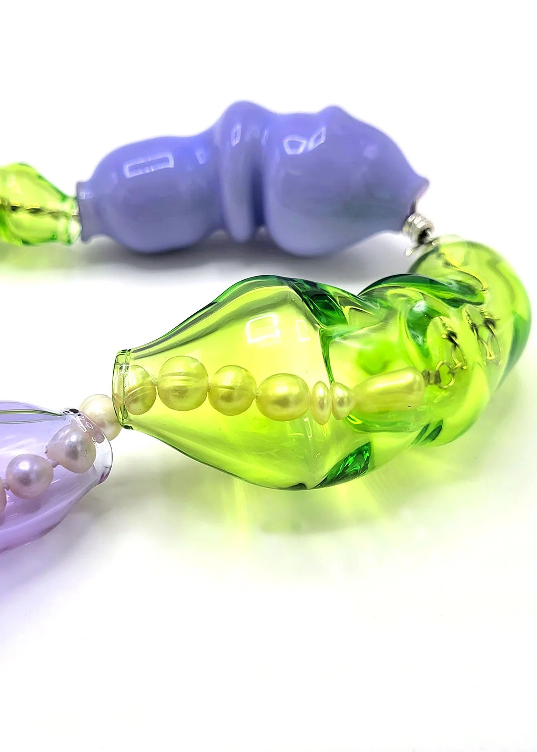 "Fragile Bodies Necklace II", Borosilicate glass, reclaimed pearls, sterling silver, silk thread, 10" x 7" x 1.5", 2025