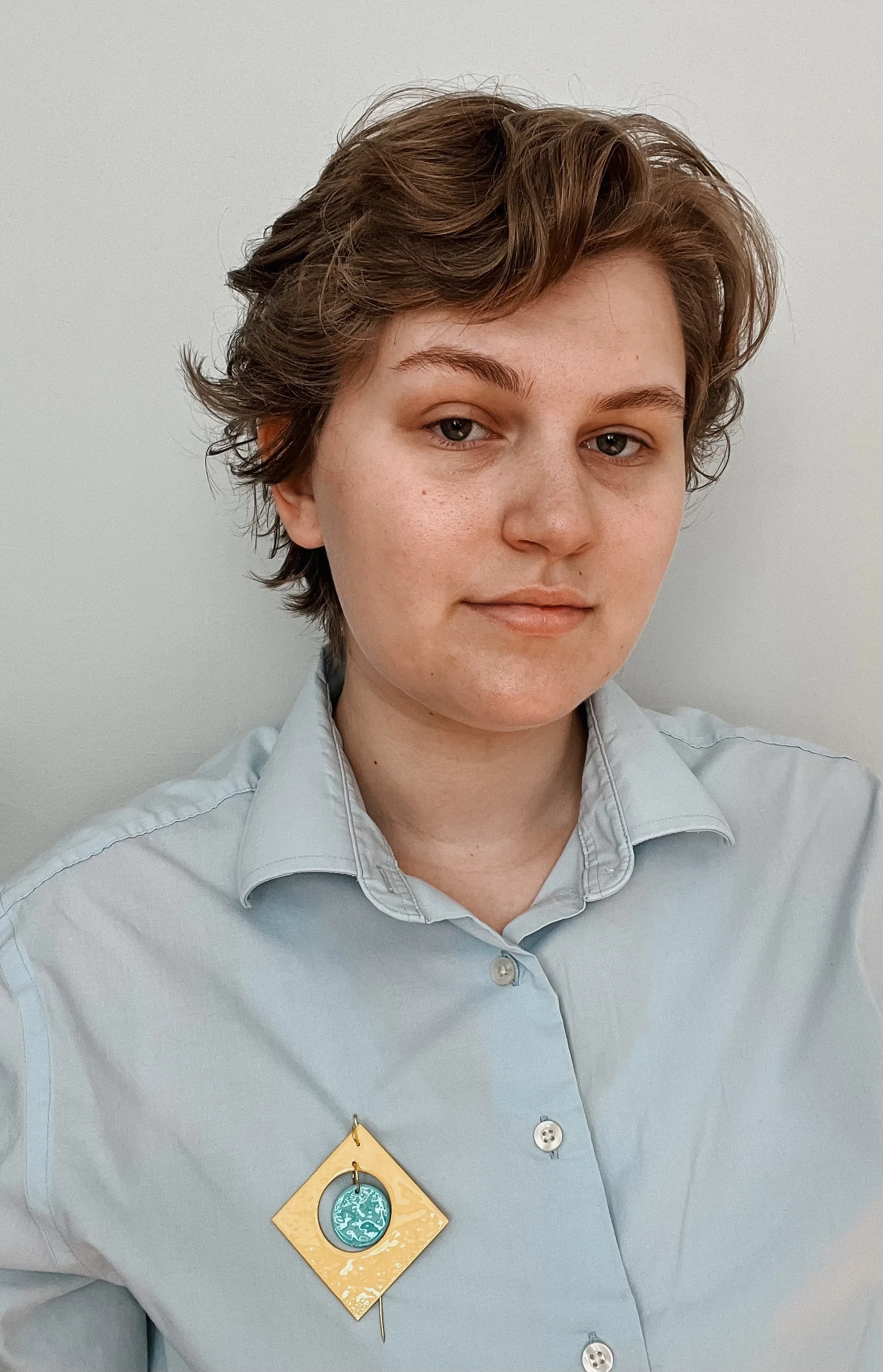 Vincent Murdoch is a queer artist from Lynn, MA and is currently a 2026 BFA candidate at Massachusetts College of Art and Design studying jewelry and metalsmithing. Their work is rooted in aesthetics and history of the mid century in conversation with self portraiture and expression. Vincent primarily focuses on processes in metal fabrication, mixed media experimentation, and powder coating as much as possible.
