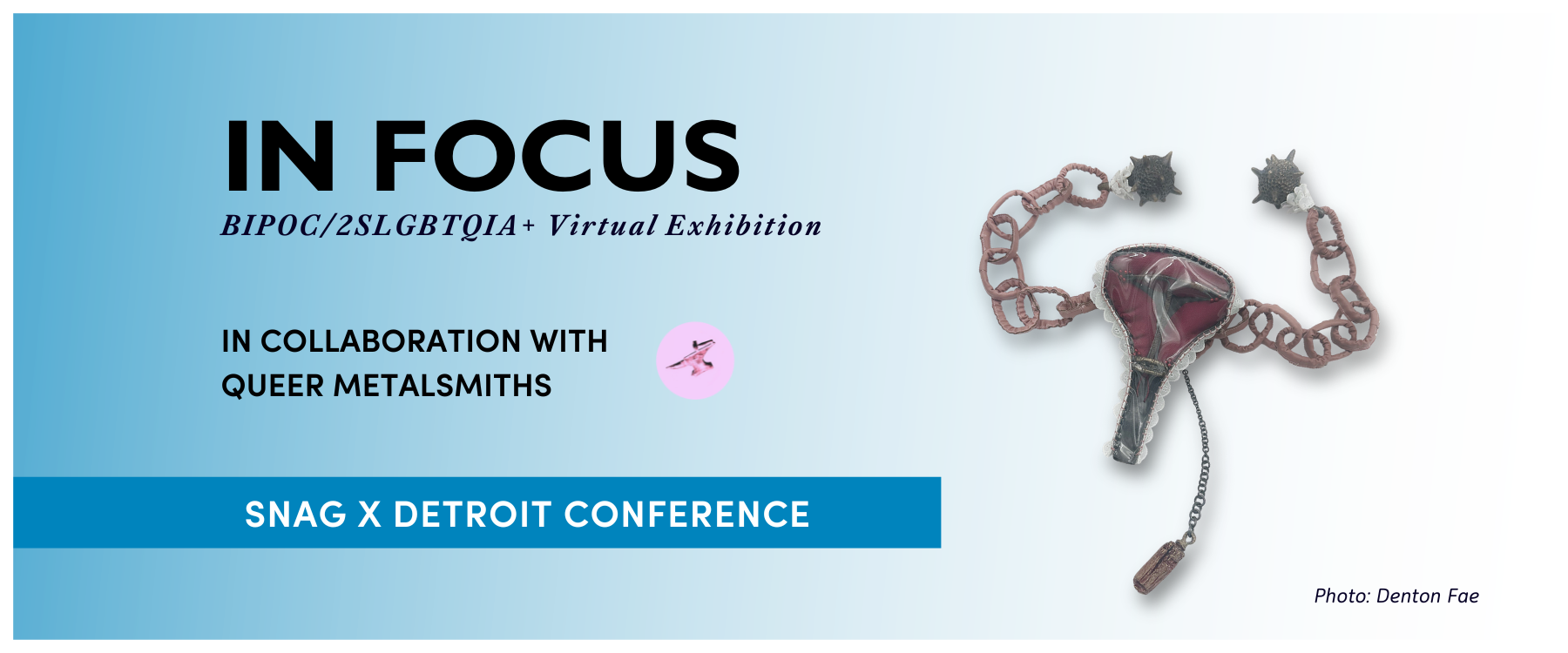 In Focus 2026 will be featured as a digital showcase during the 2026 SNAG x Detroit conference with a selection of works displayed in person. The exhibition will live in a permanent virtual gallery on both the Queer Metalsmiths and SNAG websites.