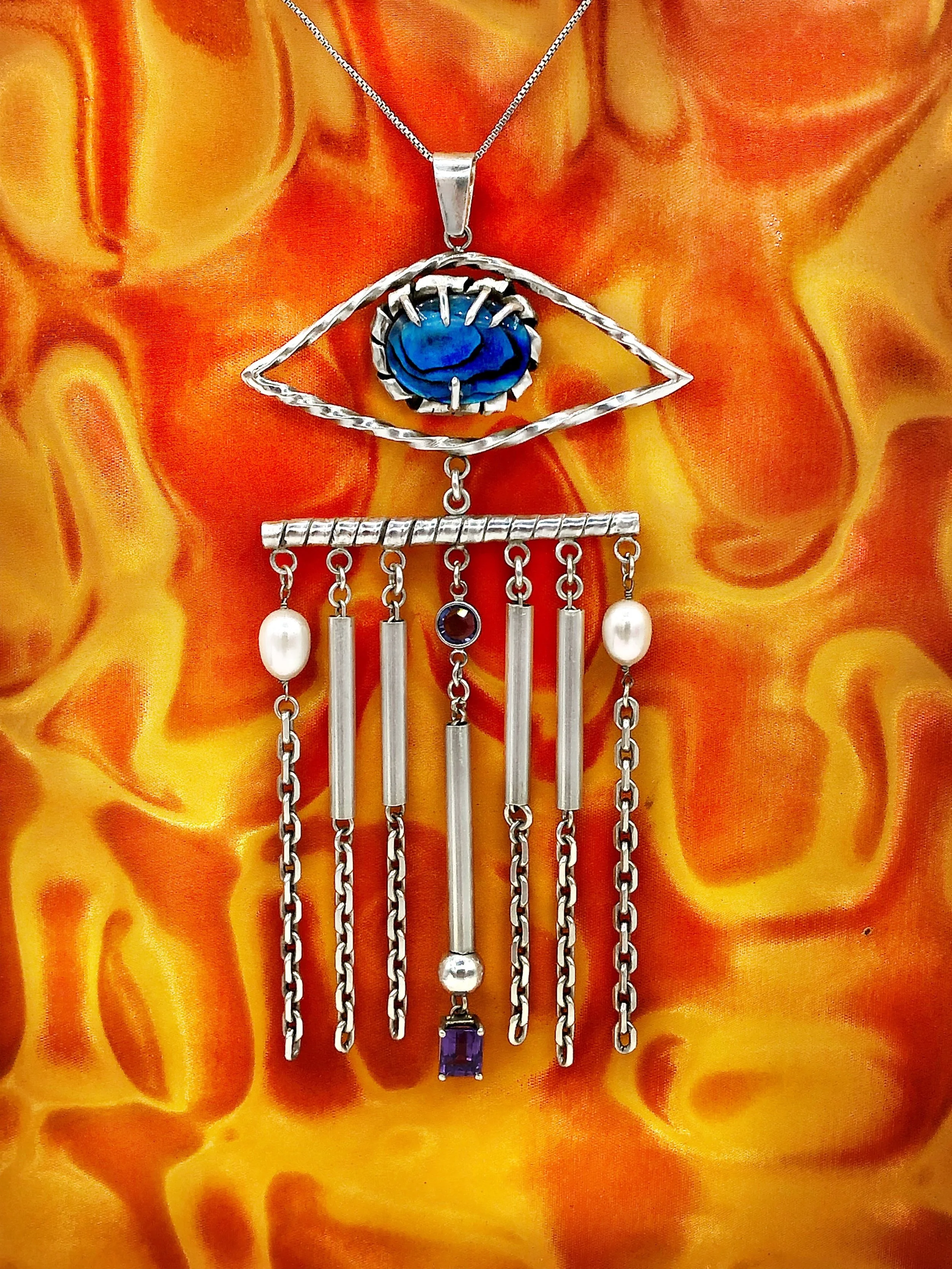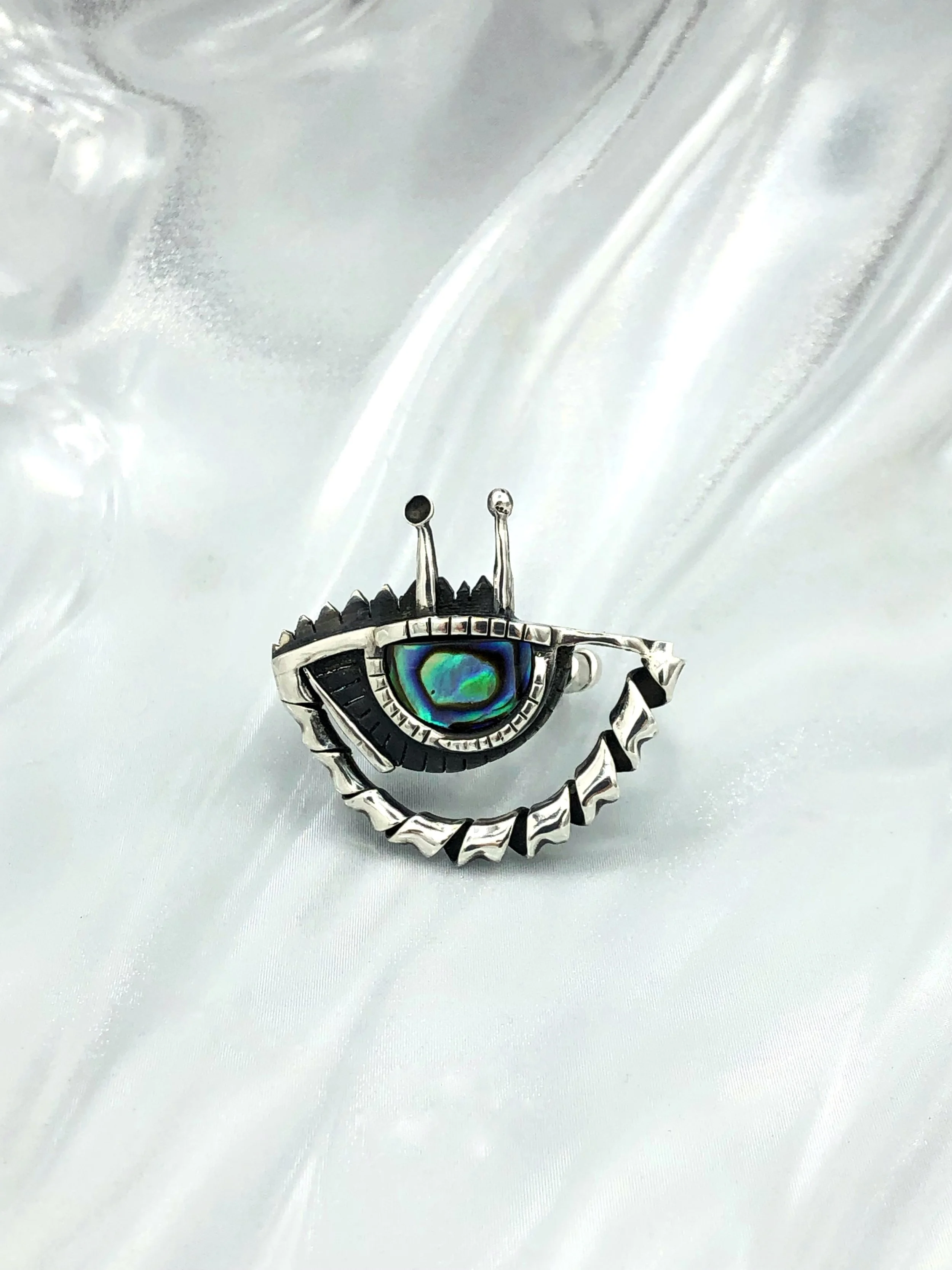 "My work centers itself around two things. Indigenous futurism, which envisions what my mayan ancestors from Honduras would wear in a future where colonialism never took place. And spirals which reflect the different cycles/states within my inner being. My vision redefines the colonial ideologies of sacred indigenous jewelry beyond what’s seen in history museums/books. Intertwining traditional hand craftsmanship and science fiction to offer a variety of creativity possibilities surrounding the infinite spirals that is a constant theme in my work.⠀